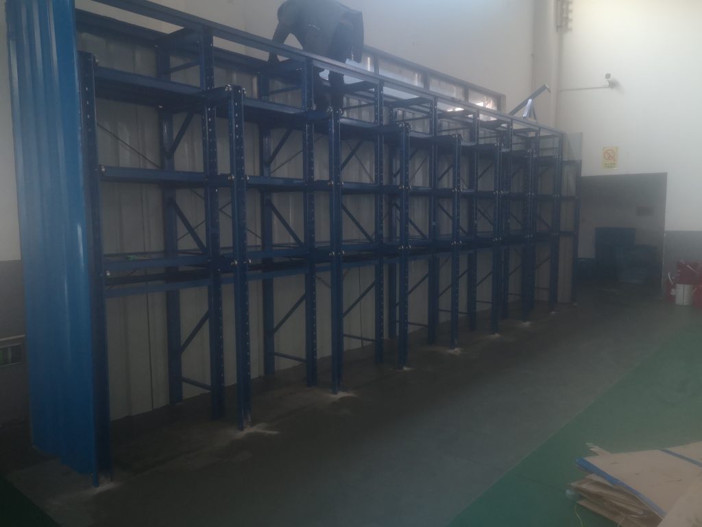 此款模具架為帶封板式的全抽模具架,和之前不同的是,這次的封板是帶波浪形狀的,客戶為了實(shí)現(xiàn)防塵和客戶參觀以及其他安全問(wèn)題的考慮,我們一同商定,所有的封板使用帶波浪的彩鋼板,既可以滿足功能需求,又節(jié)約一部分開(kāi)支;
