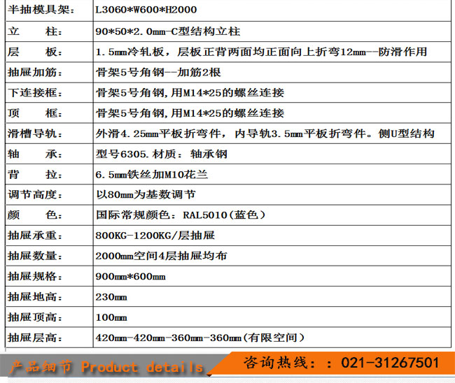 手搖模具架特點(diǎn):承重大,操作輕便,抽拉靈活。每層可定制3-10噸